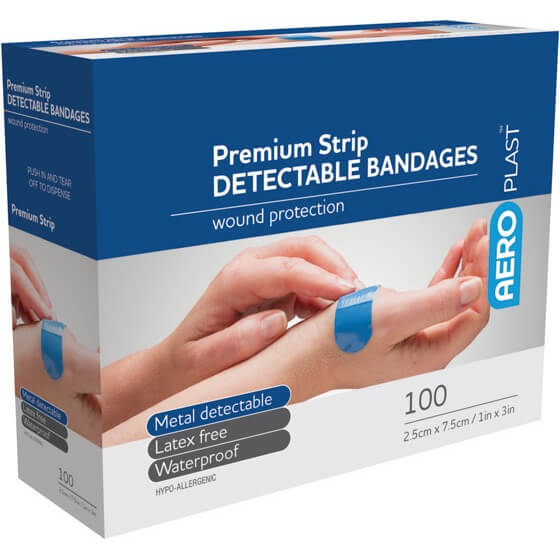 The AeroPlast Premium Detectable plaster is a premium latex-free, waterproof, hypo-allergenic, visual and metal detectable plaster specifically designed for the food manufacturing and processing sector