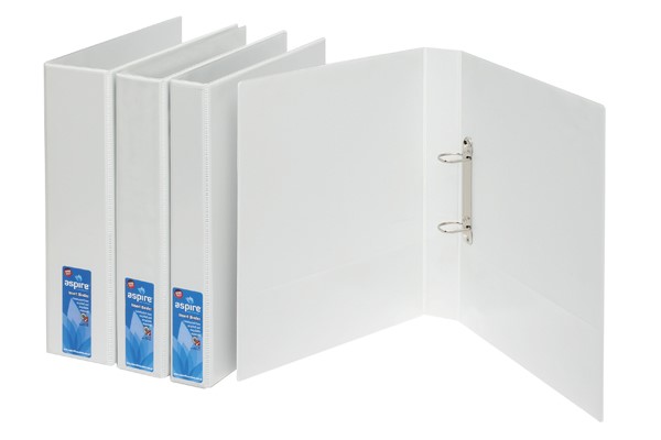 Aspire Insert Binder A4 2D Ring 50mm White (12 per Box)