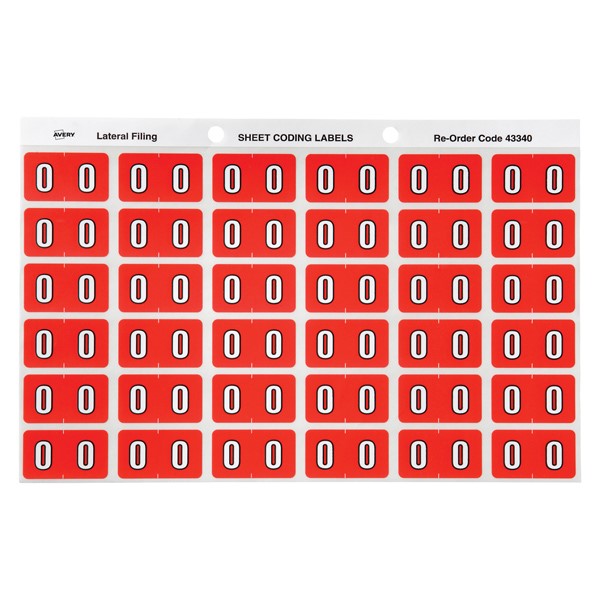 There are 180 pink Numeric 0 Side Tab Colour Coding Labels in a pack with a size of 25 x 38mm ready to stick straight onto the side tab of your Avery Lateral Files.