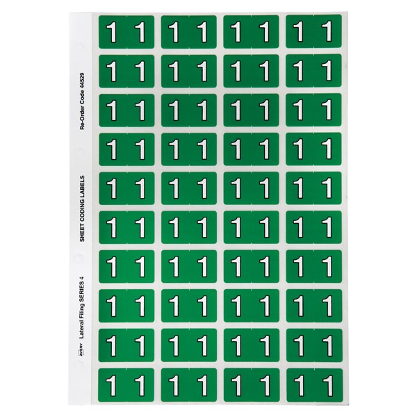 There are 240 green Alphanumeric 1 Side Tab Colour Coding Labels in a pack, size of 25mm x 42mm ready to stick straight onto the side tab of your Avery Lateral Files.