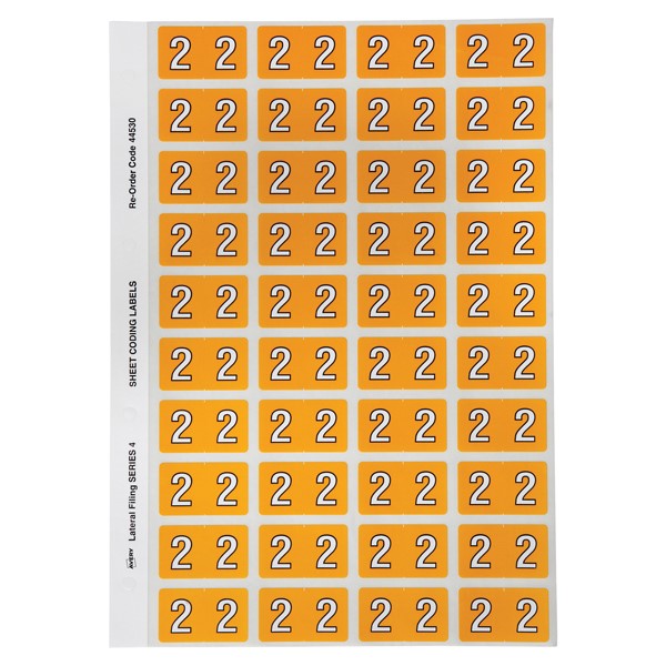 There are 240 orange Alphanumeric 2 Side Tab Colour Coding Labels in a pack, size of 25mm x 42mm ready to stick straight onto the side tab of your Avery Lateral Files.