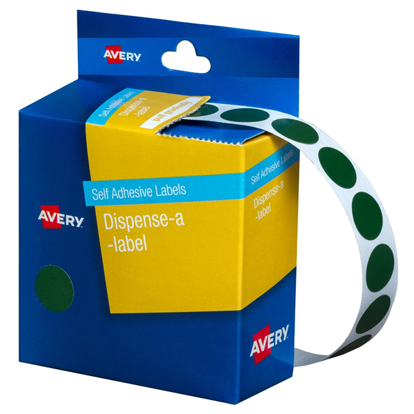 Avery Dispenser Dot Stickers 14mm Diameter Green 1050 Pack