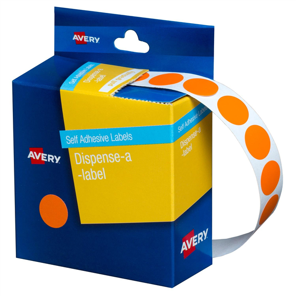 Avery Dispenser Dot Stickers 14mm Diameter Orange 1050 Pack (5 per Box)
