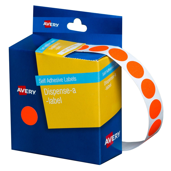 Avery Dispenser Dot Stickers 14mm Fluro Red 700 Pack (5 per Box)