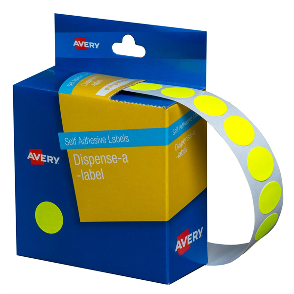 Avery Dispenser Dot Stickers 14mm Fluro Yellow 700 Pack