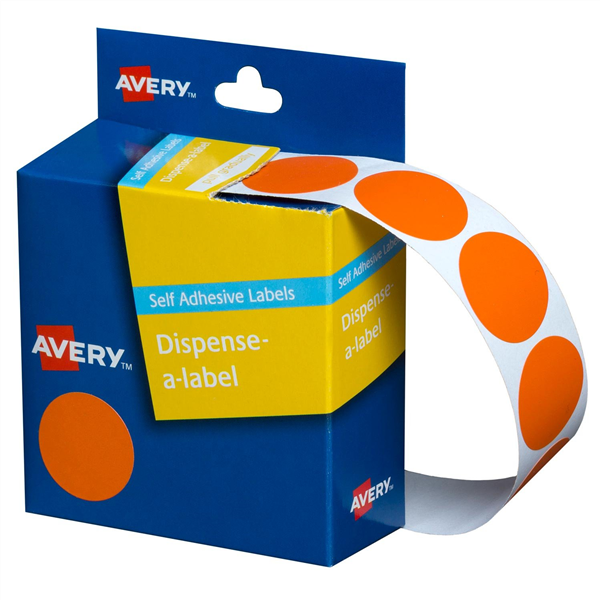 Avery Dispenser Dot Stickers 24mm Diameter Orange 500 Pack (5 per Box)