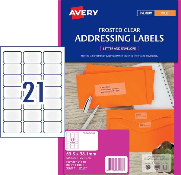 Give your invitations and letters an elegant and customised finish with Avery Frosted Clear Address Labels