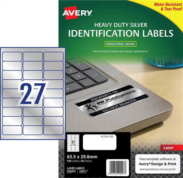 Avery Silver Heavy Duty Identification Labels are engineered to take on tough applications where a standard paper label is not fit for purpose