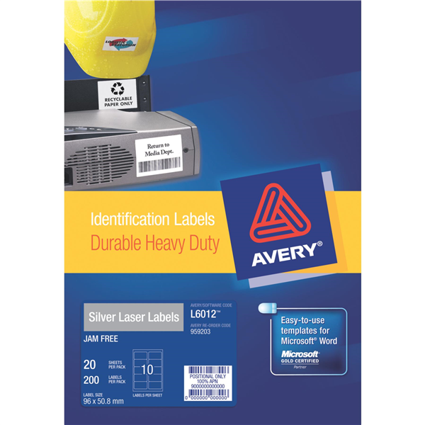 Avery Silver Heavy Duty Identification Labels are engineered to take on tough applications where a standard paper label is not fit for purpose