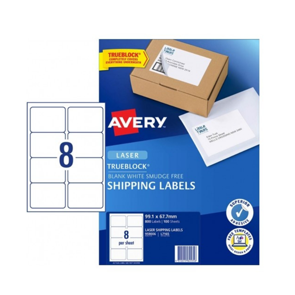 Avery L7165 TrueBlock Laser Labels 8UP Parcel White 100 Box