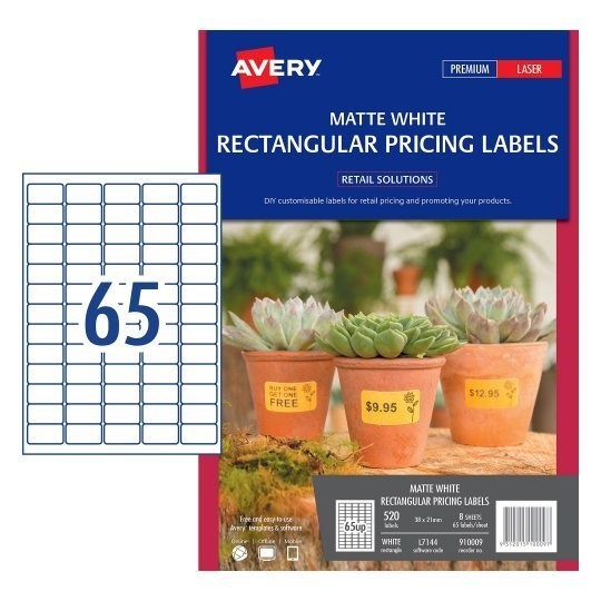 Avery Rectangular Price Labels are ideal for branding and pricing your products on the same label without the need for a pricing gun