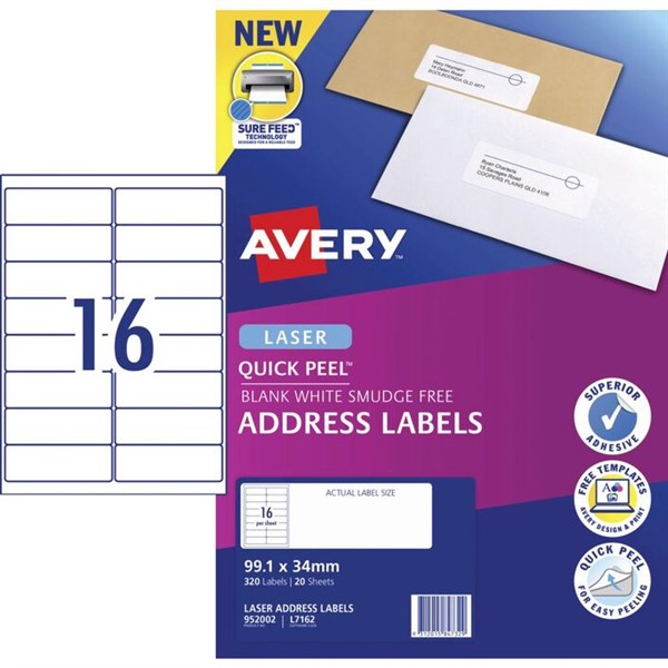 Avery Laser Address Labels White 20 Sheets