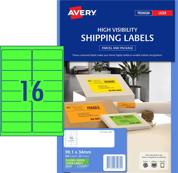 Avery Shipping Label High Visibility Fluoro Green 25 Pack
