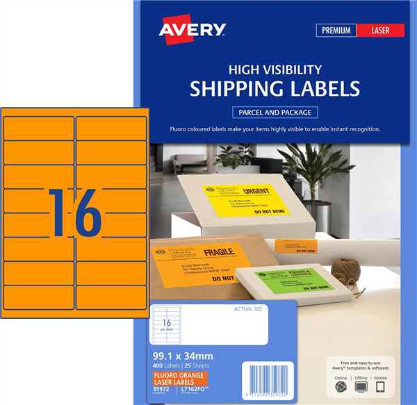 Avery Shipping Label High Visibility Fluoro Orange 25 Pack
