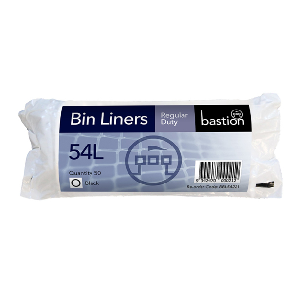 Bastion 54 Litre Regular Duty Bin Liners Black 50 Roll