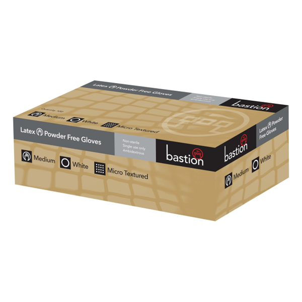 Bastion Powder Free Micro Textured Latex Disposable Gloves White Bx100