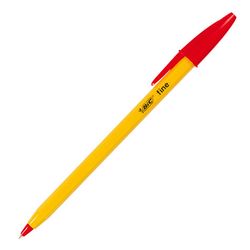 BIC's ballpoint fine red pens feature a long-lasting tungsten carbide ball with orange barrel