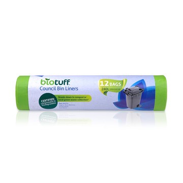 BioBag compostable biodegradable council rubbish bin bag liners, manufactured using renewable resources, plant base thermoplastic corn starch resins