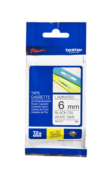Brother TZe211 Labelling Tape 6mm Black on White