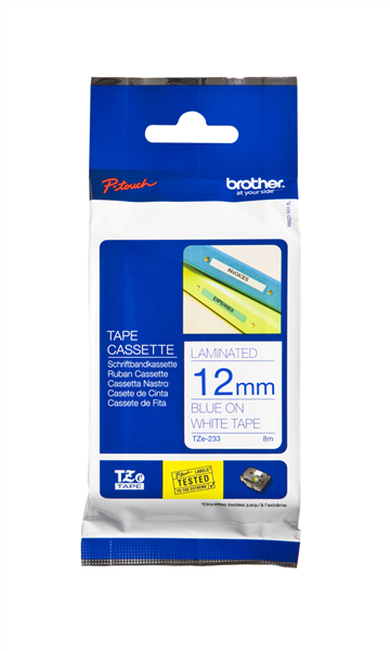 Brother TZe233 Labelling Tape 12mm Blue on White