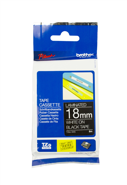 Compatible with a wide range of Brother’s P-touch printers, this genuine laminated TZe-345 labelling tape cassette is especially versatile thanks to its easy-to-read black and white colour – so it comes in useful around the home, office and in other workplaces.