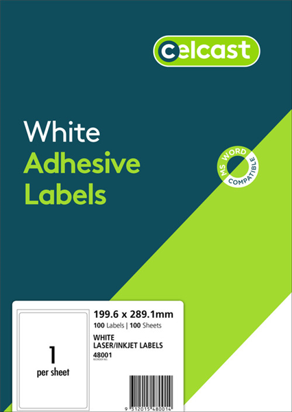 Celcast Labels 1Up 199.6x289.1mm White 100 Box