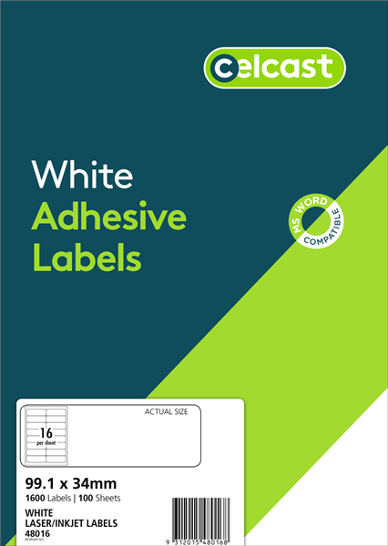 Celcast Laser Inkjet Adhesive Label 16UP White 100 Box