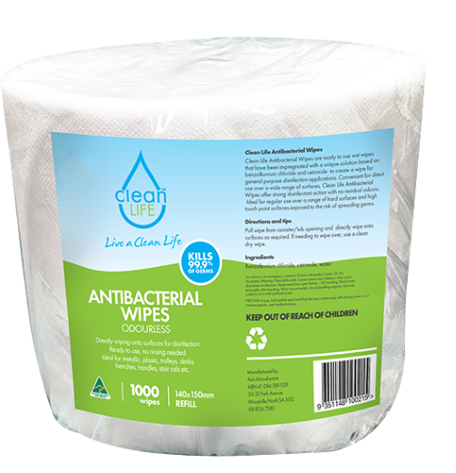 CleanLIFE Antibacterial Wipes 140 x 150mm 1000 Tub Each