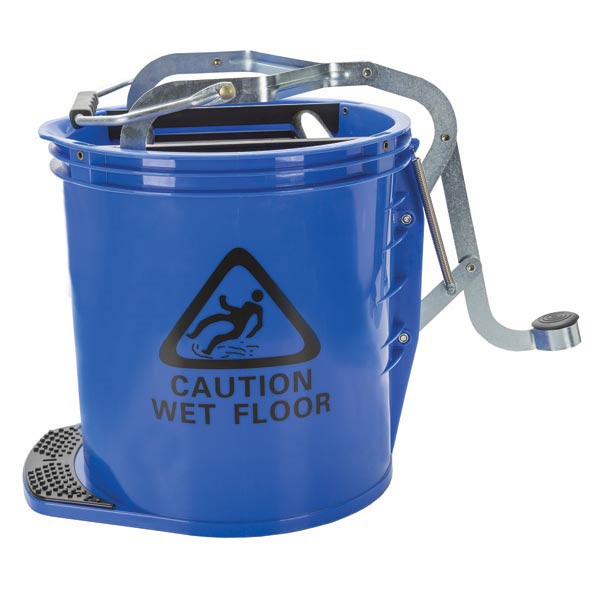 These sturdy plastic buckets have a metal foot pedal and wringer mechanism to endure every day use