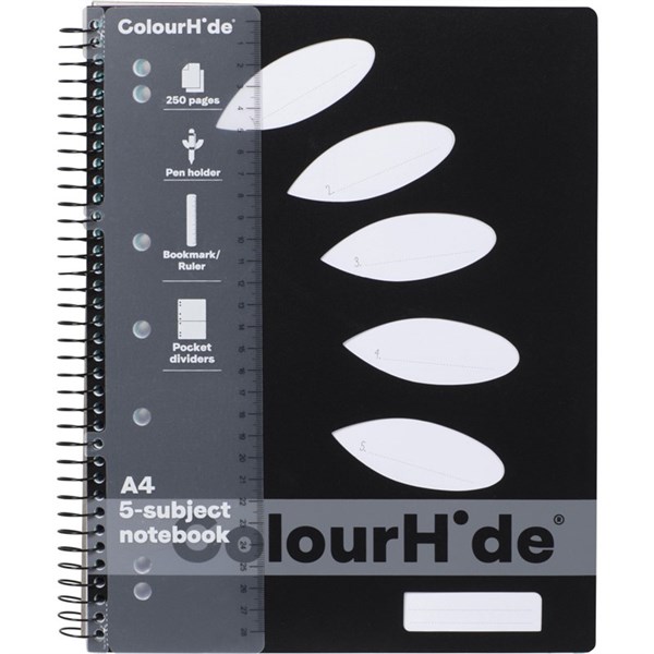 ColourHide Notebook A4 5 Subject 250 page Black (5 per Pack)