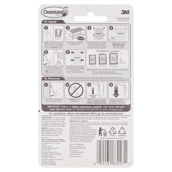 Comes with the revolutionary Command Interlocking fasteners which strongly yet, comes off cleanly if you change your mind with no holes, marks, sticky residue or stains