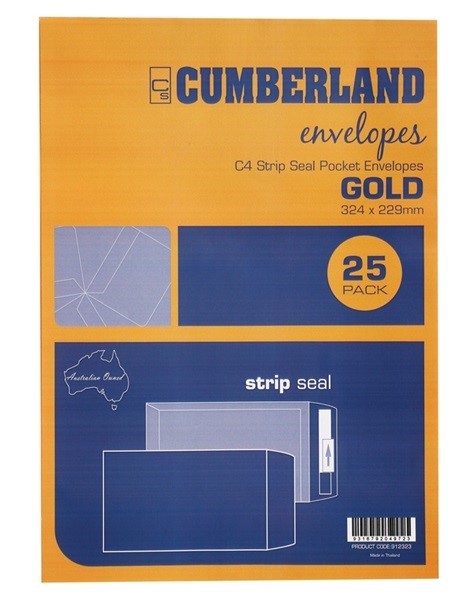 Cumberland Strip Seal Envelope C4 85gsm Gold 25 Pack