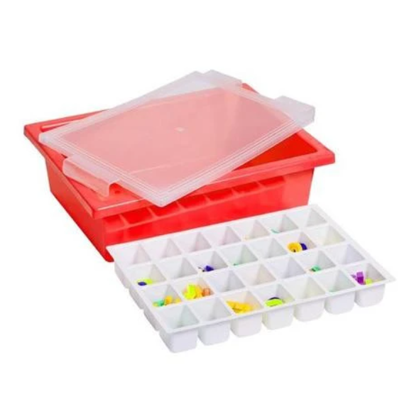 Store a wide range of small resources in this handy combo set consisting of a tray, lid and one 28-section insert