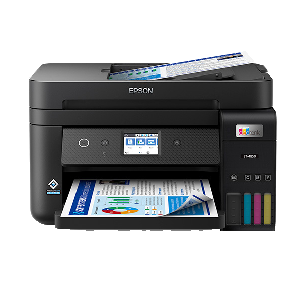 EcoTank 4 Colour Multifunction Printers Not sure which printer to buy? Call a dedicated printer specialist on 1300 782 636 during business hours for free advice! The Epson EcoTank ET-4850 all-in-one printer, powered by PrecisionCore® Heat-Free Technology, offers cartridge-free printing with easy-to-fill, supersized ink tanks