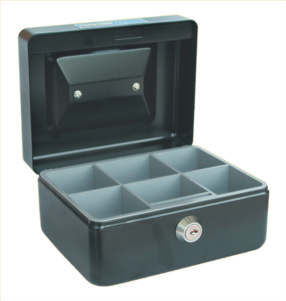 Features a handle that folds neatly into a recess when not in use, a secure cylinder lock with two keys and a partitioned coin tray.