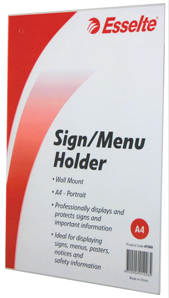 Esselte Document Holder Portrait Wall Sign A4 Clear
