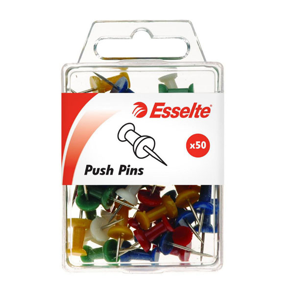 Esselte Push Pins Assorted Colours 50 Pack