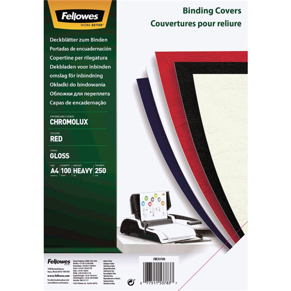 Fellowes Binding Covers Gloss A4 Red 100 Pack