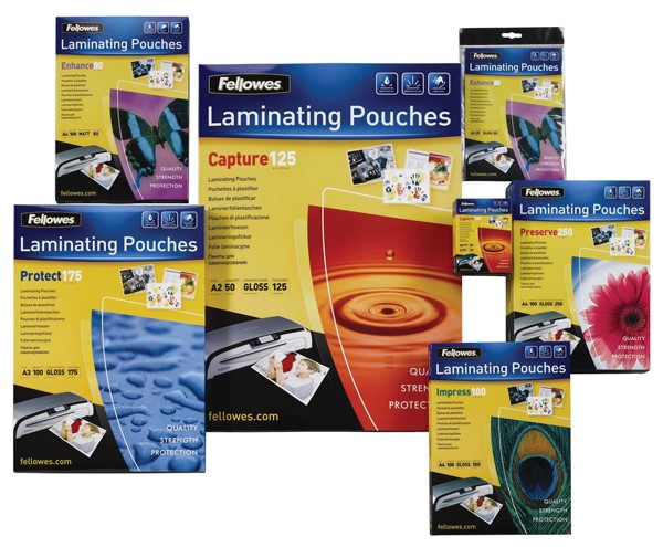 Make your document last with Fellowes premium quality laminating pouches.