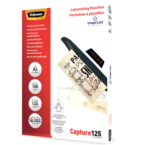 Fellowes Laminating Pouches 125 Micron A3 Gloss 100 Pack
