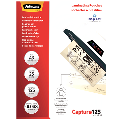 Fellowes Laminating Pouches A3 125 Micron 25 Pack