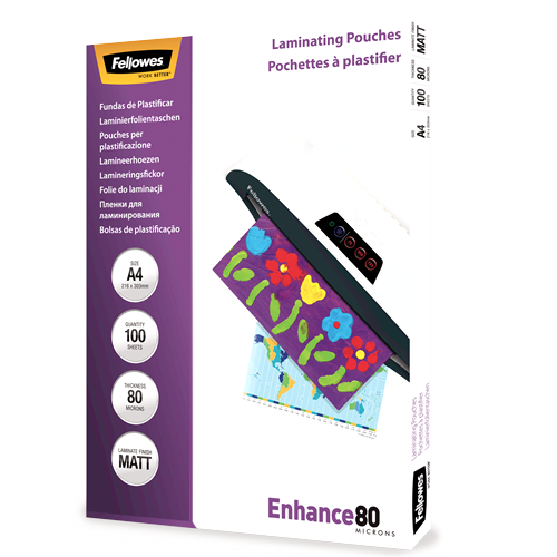 Fellowes Laminating Pouches A4 80 Micron Matte 100 Pack