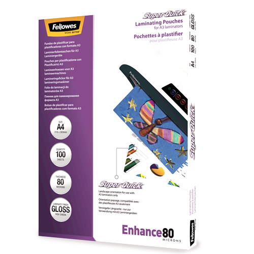 Fellowes Laminating Pouches A4 80 Micron Superquick 100 Pack