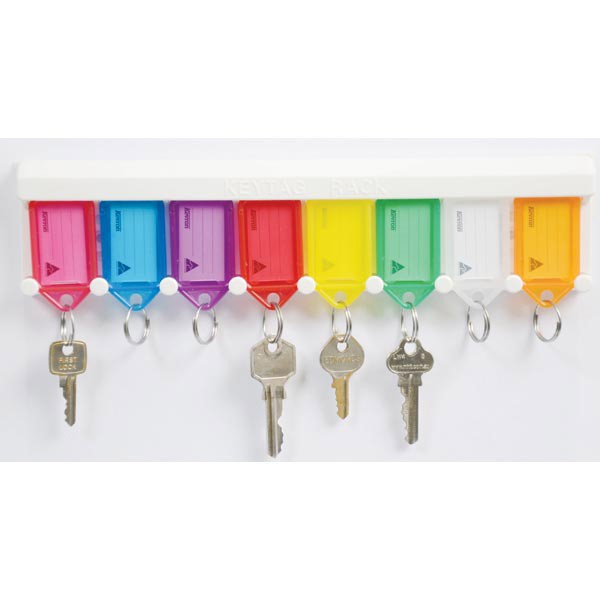 Key tag tidy racks can attach to walls and filing cabinets.