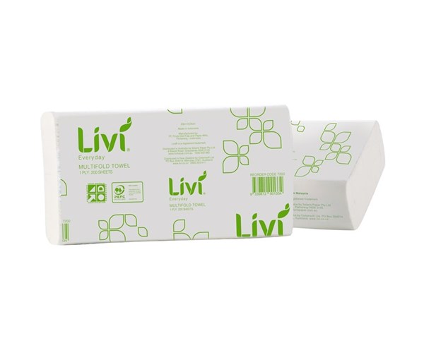 Livi 7200 Everyday Multifold Towel 1ply 200 Sheets Carton 20 (24 per Pallet)