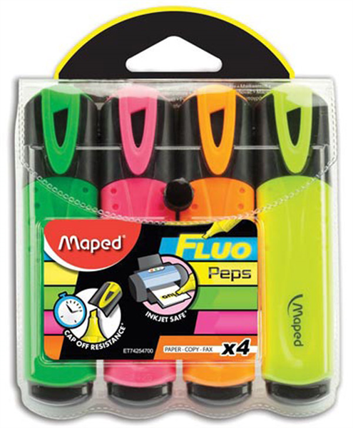 Maped Fluo Peps Highlighter Assorted 4 Pack