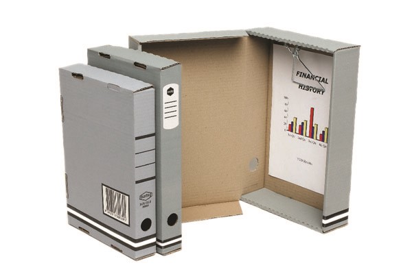 A stylish cardboard box with strong metal clip to keep documents in place.
