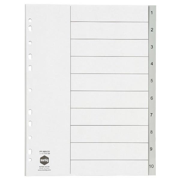 Marbig Dividers 1 to 10 Tab PP A4 Grey