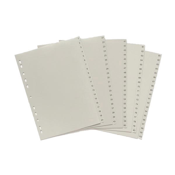 Marbig Dividers 1 to 100 Tab PP A4 Grey