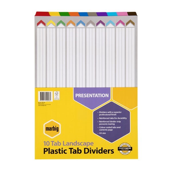 Marbig Dividers 10 Tab Landscape A3 Assorted